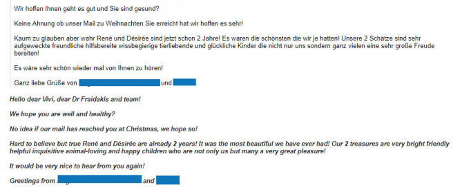 La famiglia tedesca che vive in Australia e che è venuta al Centro Fertilita di Creta per realizzare i loro sogni ha il suo compleanno di 2 anni per i suoi bambini felici! Hallo liebe Vivi, lieber Dr Fraidakis und Team! Wir hoffen Ihnen geht es gut und Sie sind gesund? Keine Ahnung ob